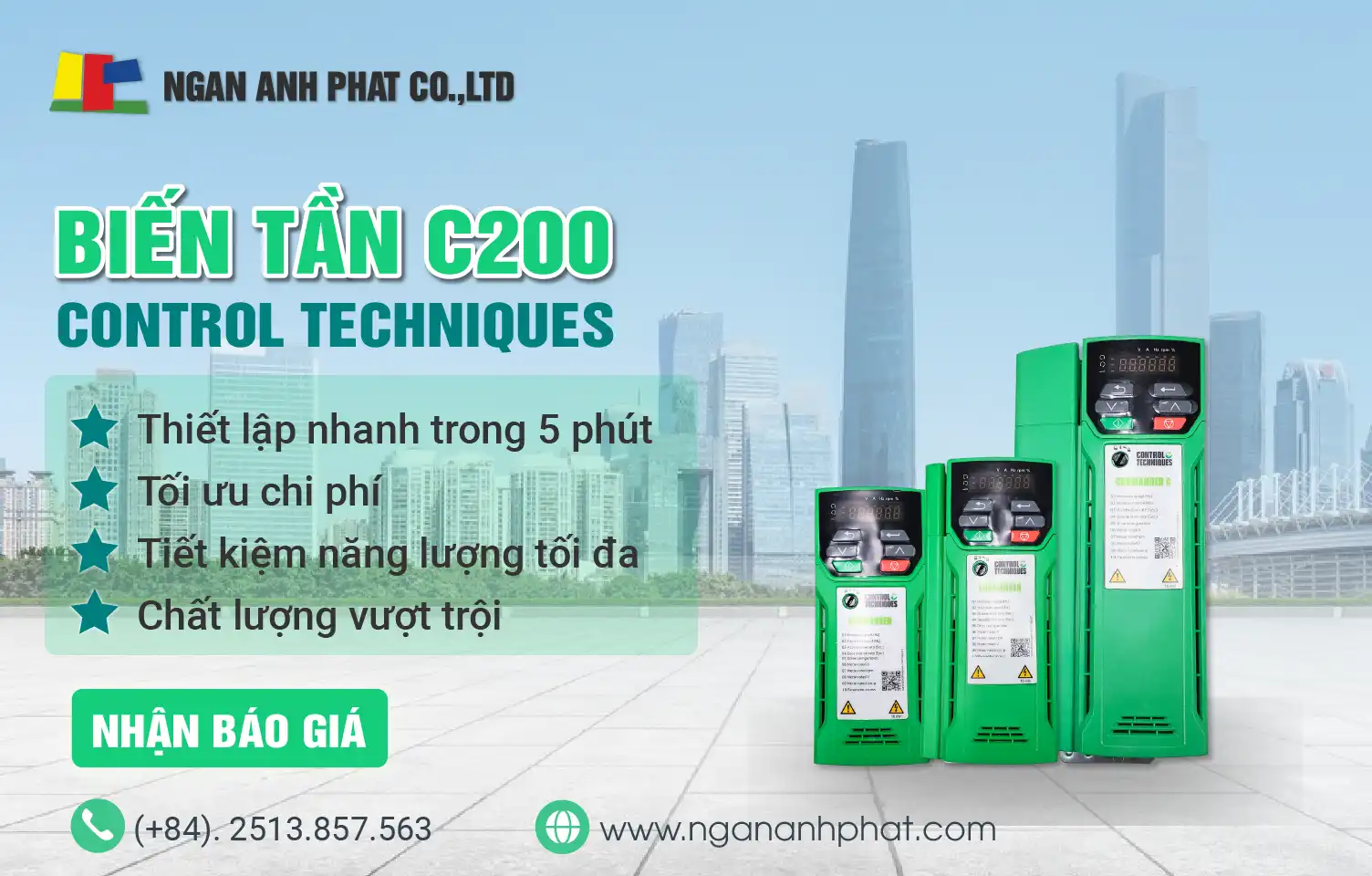Công ty TNHH Ngân Anh Phát không ngừng nỗ lực phát triển, khẳng định vị thế trên thị trường. Trải qua hơn 18 năm hoạt động, chúng tôi đã trở thành đối tác tin cậy hàng đầu trong các lĩnh vực: Tự động hóa – Thiết bị công nghiệp – Điện – Điện tử – Vật liệu và thiết bị làm khuôn mẫu. Bên cạnh đó, Ngân Anh Phát không ngừng mở rộng hoạt động với các dịch vụ đa dạng, mang đến giải pháp toàn diện, đáp ứng nhu cầu ngày càng cao của khách hàng và đối tác.