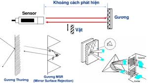 – Thiết bị này cũng được hoạt động theo hai trạng thái có vật cản và không có vật cản. Khi có vật cản thì cảm biến phát sáng liên tục đến bề mặt vật cản, ánh sáng sẽ đi ngược về vị trí thu sáng của thiết bị. Khi không có vật cản thì ánh sáng không phản xạ lại vị trí thu sáng, bề mặt cũng sẽ không phản xạ ánh sáng về vị trí thu.