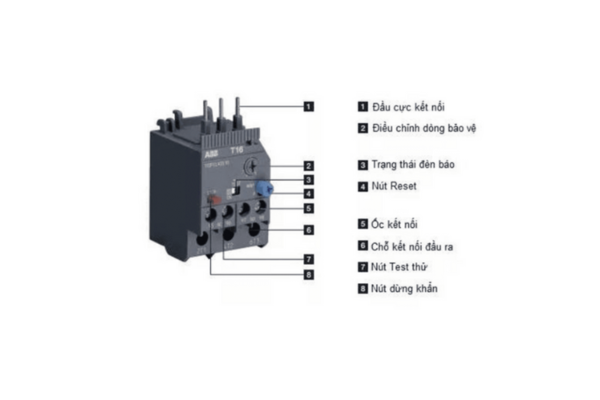 Giả dụ, cấu tạo của thiết bị rơ le nhiệt hãng ABB bao gồm một tiếp điểm đóng, mở.