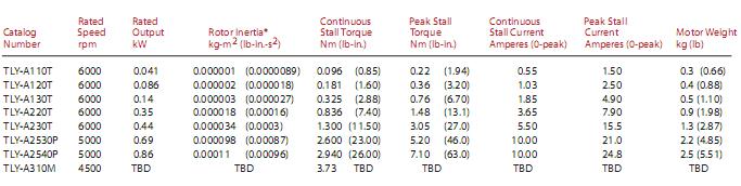 Thông số kĩ thuật servo motor TL-series Allen Bradley