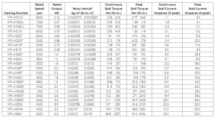Đặc tính kĩ thuật servo motor MP-series của nhà cung cấp Allen Bradley