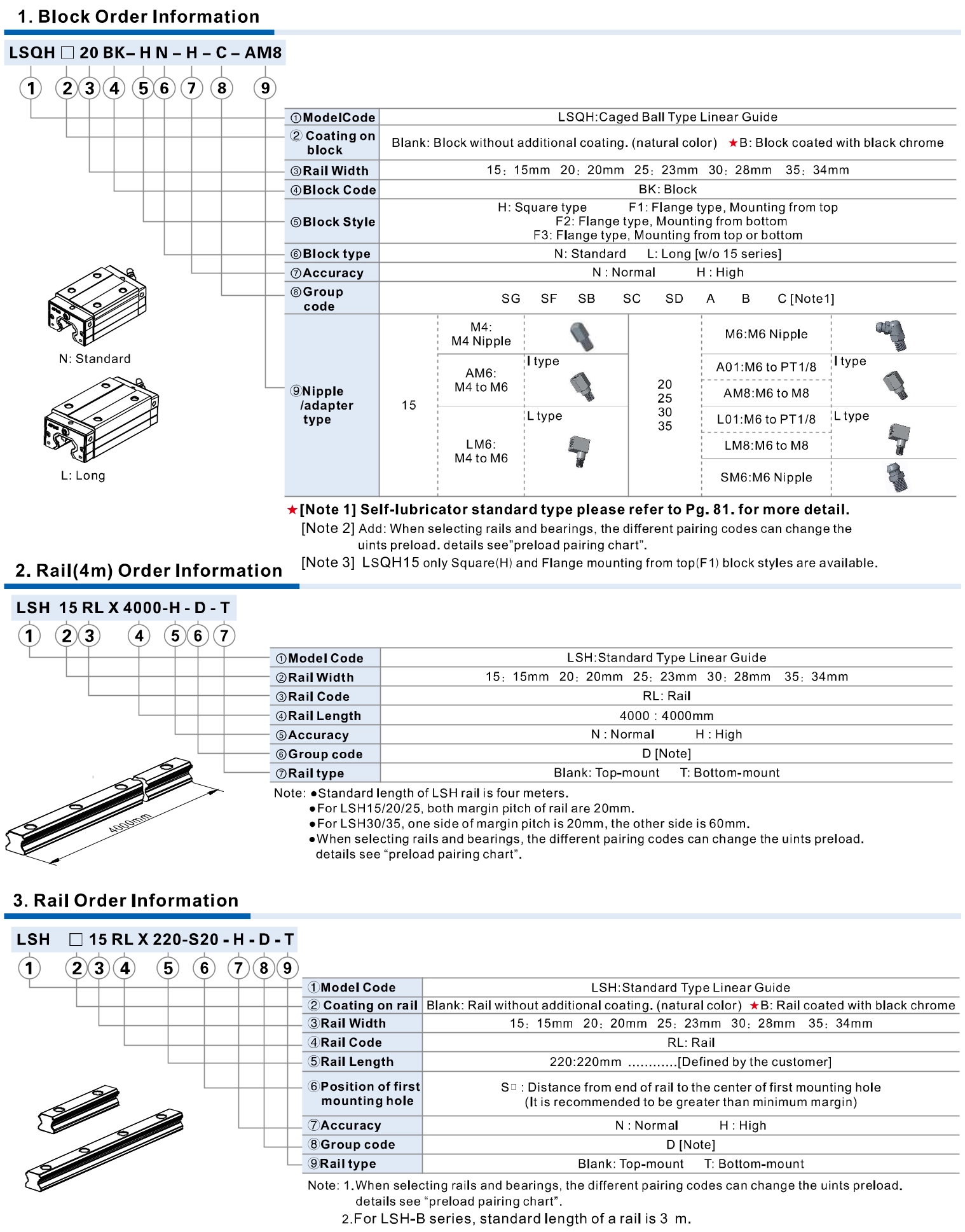 | Model\Item | External Dimension ( mm ) | Block Dimension ( mm ) | Rail Dimension ( mm ) | ||||||||||||||||||||||||||||||||||||||||||||||||
