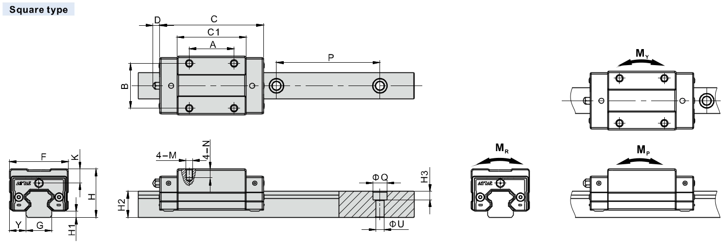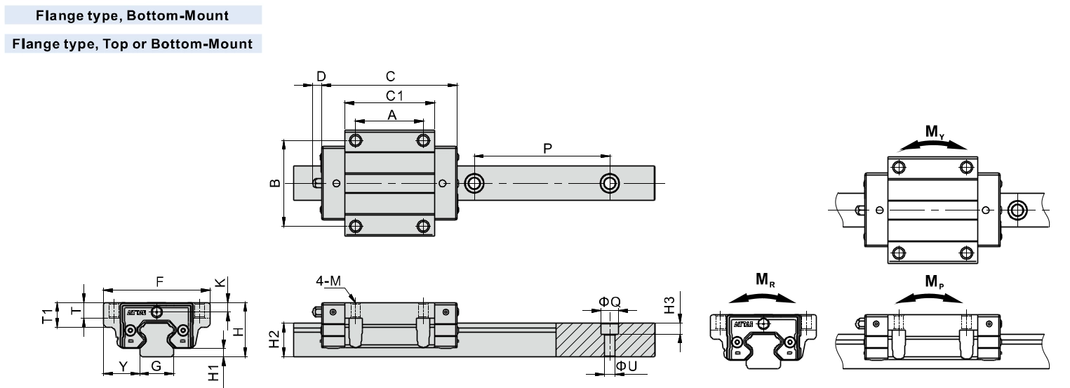 | Model\Item | Mounting Screw | Dynamic Load Rating(kN) | Static Load Rating(kN) | Static Rated Moment (kN.m) | Weight | |||||||||||||||||||||||||||||||||||||||||||||