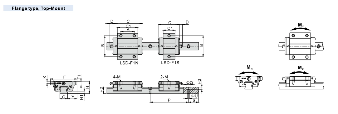 | Model\ltem | MountingScrew | Dynamic Load Rating(kN) C | Static Load Rating(kN) C0 | Static Rated Moment (kN.m) | Weight | |||