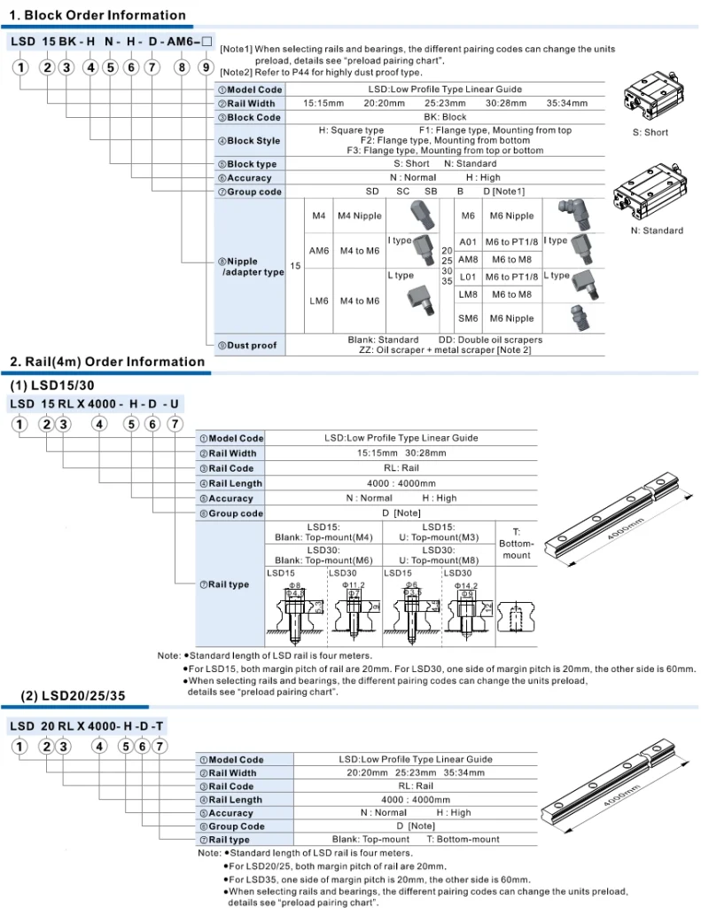 Danh Sách Model Và Thông Số Kỹ Thuật Thanh Trượt – Con Trượt LSH Series