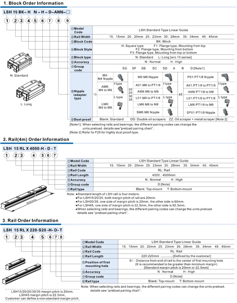 Danh Sách Model Và Thông Số Kỹ Thuật Thanh Trượt – Con Trượt LSH Series