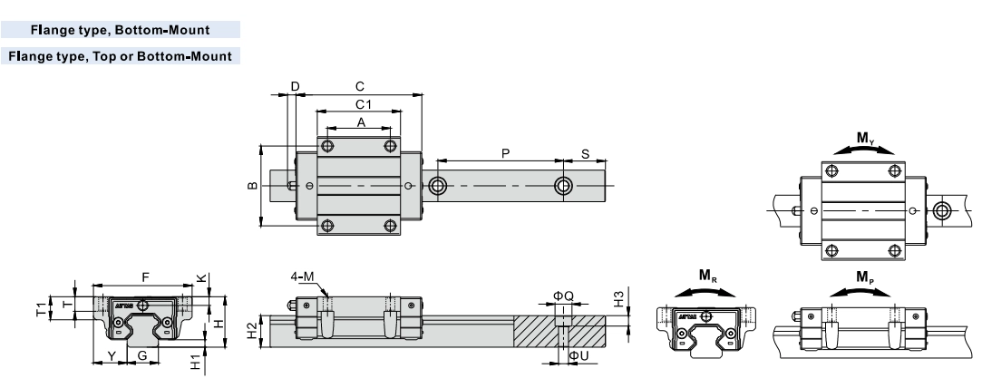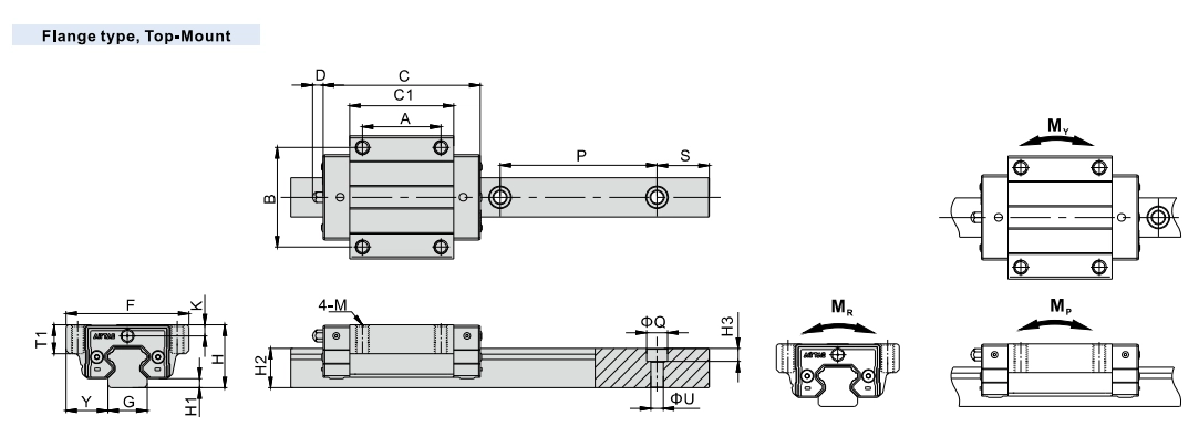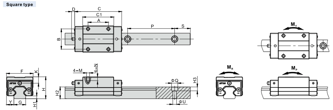 | Model\ltem | MountingScrew | Dynamic Load Rating(kN) C | Static Load Rating(kN) C0 | Static Rated Moment (kN.m) | Weight | |||