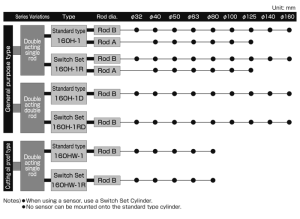 • Xy lanh loại gắn công tắc (Switch Set) với đường kính từ 32 mm đến 160 mm được tiêu chuẩn hóa